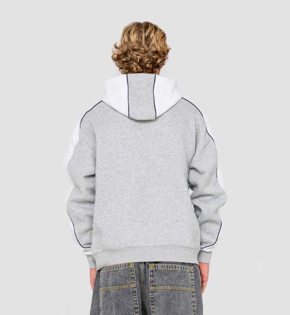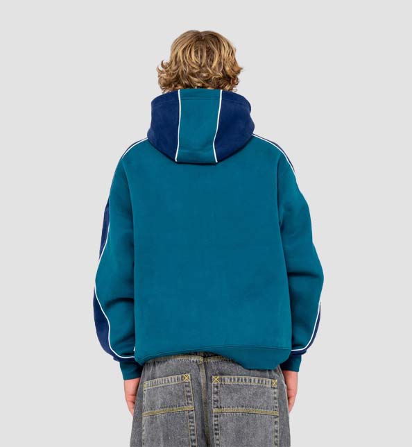 Relaxed R2K Fit Hooded Fleece With Panel And Piping Details And Rusty Embroidery. 58% Polyester / 42% Cotton Fleece After Wash