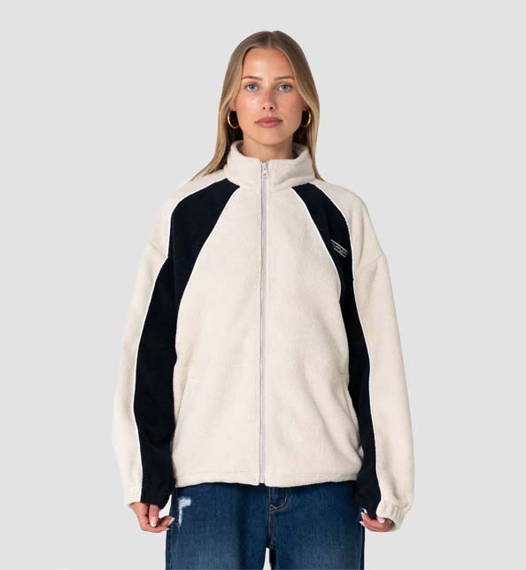 OVERSIZED ZIP THRU FLEECE WITH SIDE POCKETS – PANELS AND ADJUSTABLE TOGGLES AT HEM